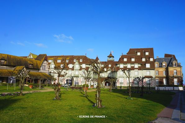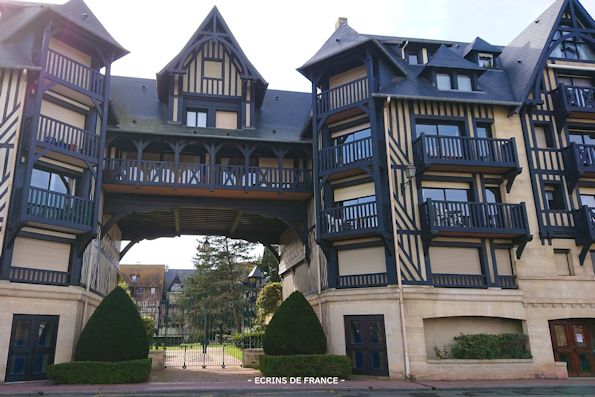 芝生に覆われた広場の向こうにグリーンで塗装された木組みで、ベルエポック時代を彷彿とさせるシックなヴィラが現れた。伝説の「オテル・バリエール・ル・ノルマンディ(Hôtel Barrière Le Normandy)」。1966年にカンヌ映画祭の最高賞パルム・ドールを獲得したクロード・ルルーシュ監督の映画『男と女(Un homme et une femme)』の舞台となったホテル。映画ファンの憧れの場所。撮影で使われたスイーツルームは「男と女」と名付けられ、予約がとれない人気の部屋となっている。