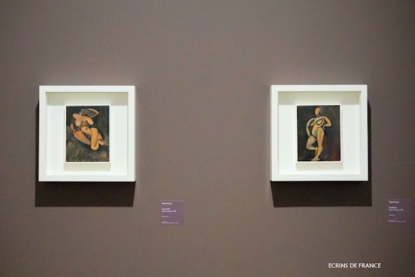 ▲『横たわる裸婦』と『立ち姿の裸婦』」(ピカソ、1908年、ピカソ国立美術館)
