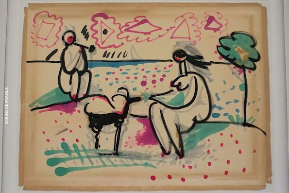 ▲『ピカソの水浴三連作をもとに描いたデッサン画』(ブリュエール、2018年、ピカソ国立美術館)