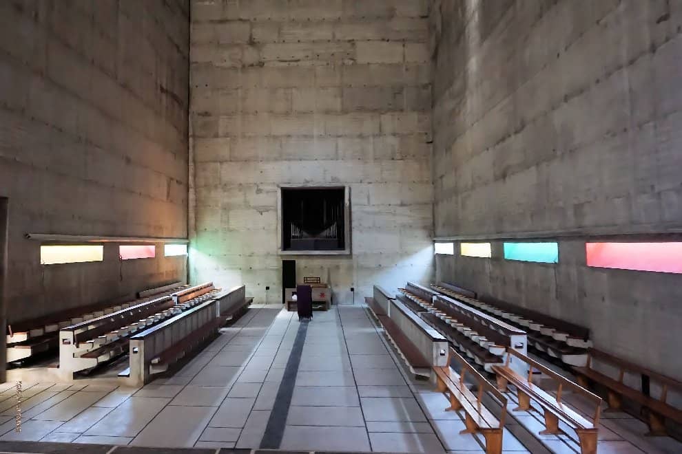 余談だが、1950年、ル・クチュリエ神父はフランシュ・コンテ地方のロンシャンに礼拝堂を建設する際にもル・コルビュジエに依頼している。シェル構造のうねった屋根が特徴の「ロンシャン礼拝堂」も世界遺産に登録され、多くの観光客を集めている場所だ。