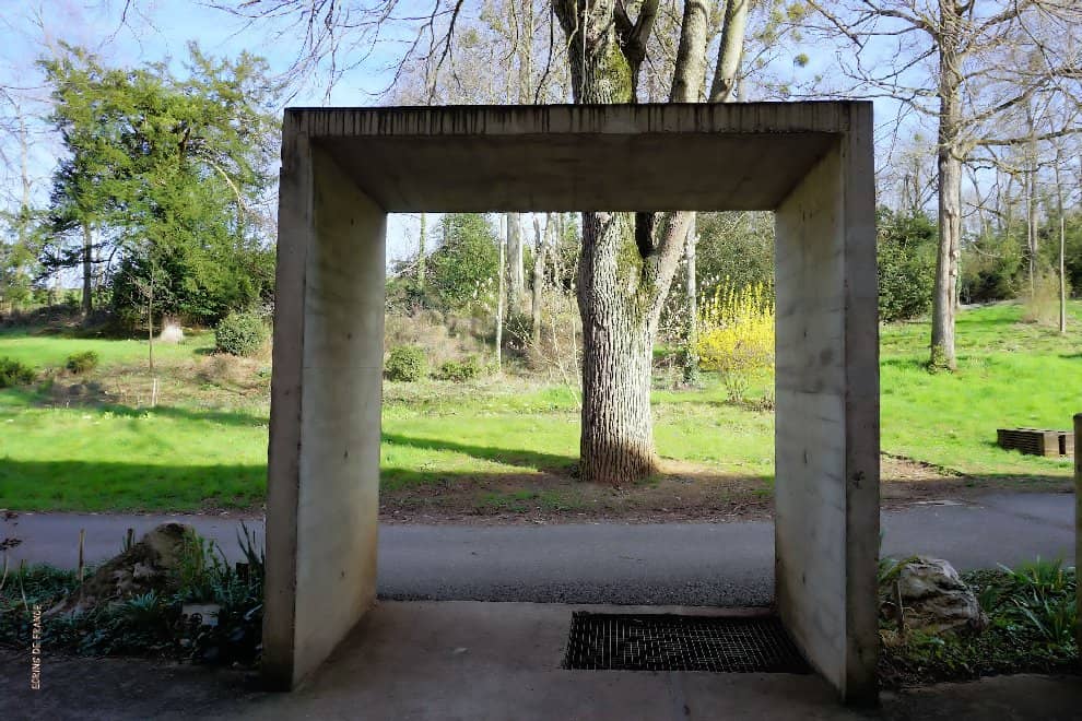 修道院の入口前に、鳥居のような形をしたコンクリート造の門がある。俗世から聖域に入る儀式のように、その門を通り抜けて中に入る。一瞬、気持ちが引き締まる。門というのはそういうものかもしれない。