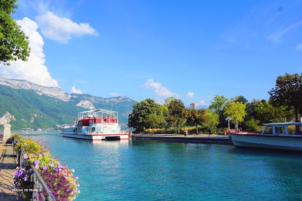 湖畔にはクルーズ船や小型ボートが停泊していて、バカンスの雰囲気が漂う。お天気が良い日は、アヌシー湖クルーズがおすすめ。対岸のタロワール村まで船で渡ることもできる。ただし、クルージングは冬季(12月~2月)休業となるので確認が必要だ。