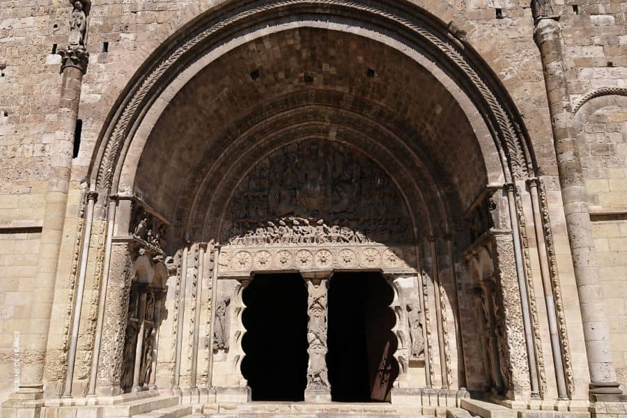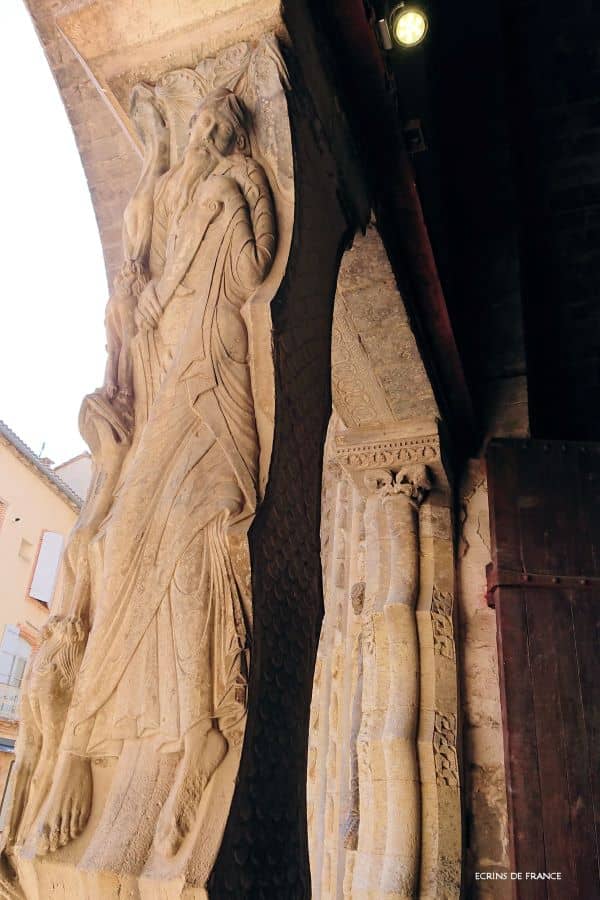 特に、東面に彫られた預言者エレミヤの物憂げな表情、波打つ顎鬚の曲線美、引き伸ばされた細長い身体とそのねじり加減、衣服のドレーブの繊細な動きなど、リテールの表現力はロマネスク彫刻のなかでも卓越した作品の一つとされる。また、扉右側には「善人」、左側には「罪人」をテーマに様々なレリーフが施されているが、これを見ただけでも、まさにロマネスク彫刻の美術館といえよう!