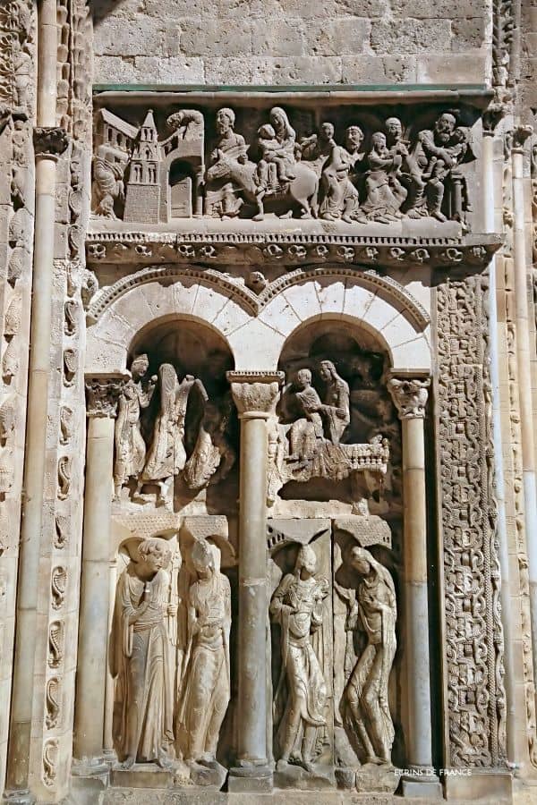 「モワサックの入口を見なかったものは、何も見なかったことに等しい」と言われるほど、モワサック修道院教会の入口を構成するタンパンやリンテル、中央柱は豊かな彫刻装飾が施され、ロマネスク芸術の傑作だ。