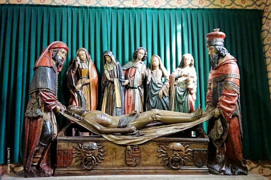 写真がボケてしまい掲載できないのが残念だが、オルガンの下にピレネーの白大理石で制作された石棺があった。石棺の中央に、クリズム(キリストのモノグラム)が彫られ、キリストの綴りの最初の文字であるX(CH)とR、初めと終わりを連想させるアルファとオメガを表わしたものだ。当時、高熱や頭痛に苦しむ人々が病からの回復を願って、この石棺の下に座ったそうだ。